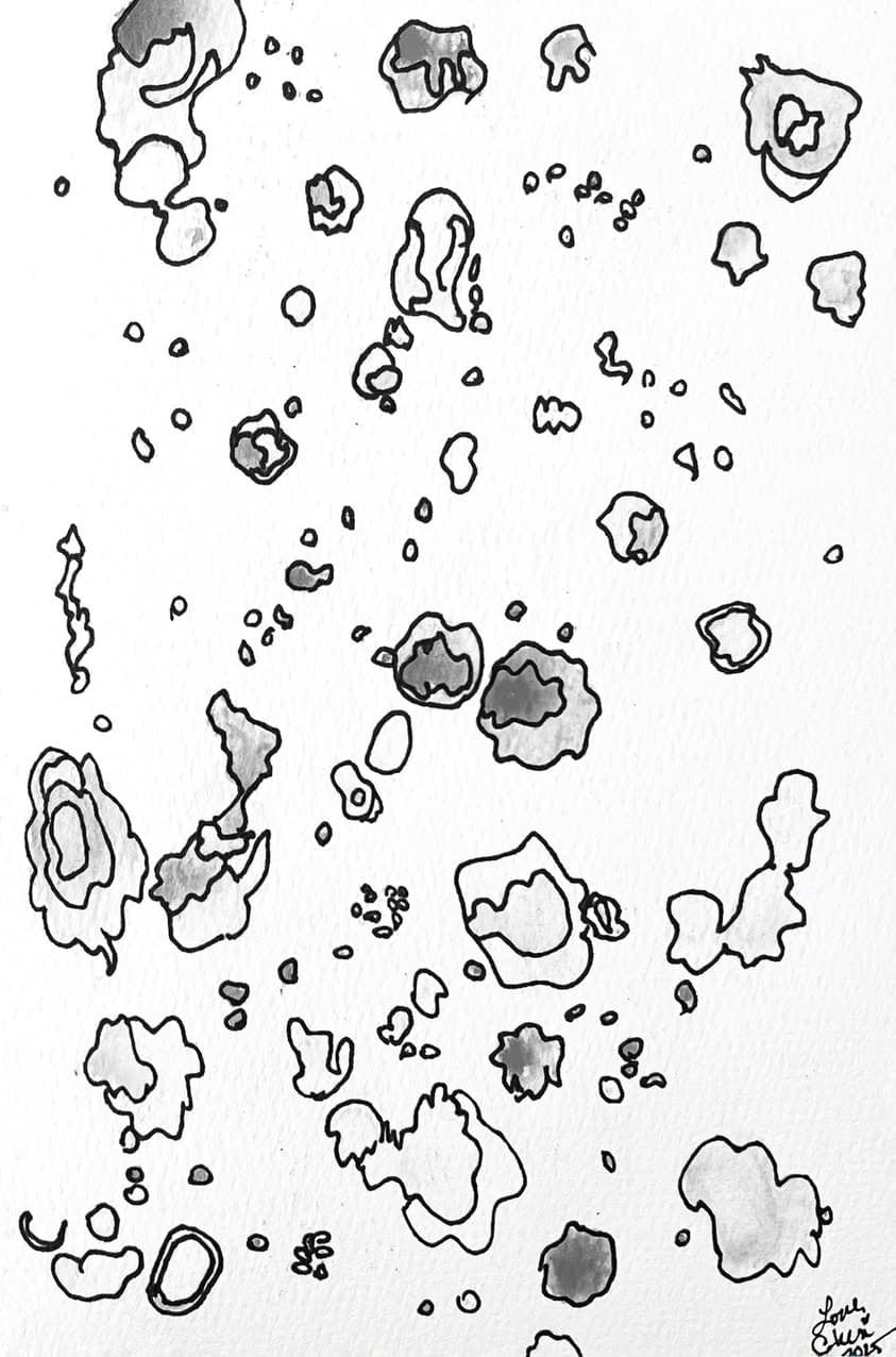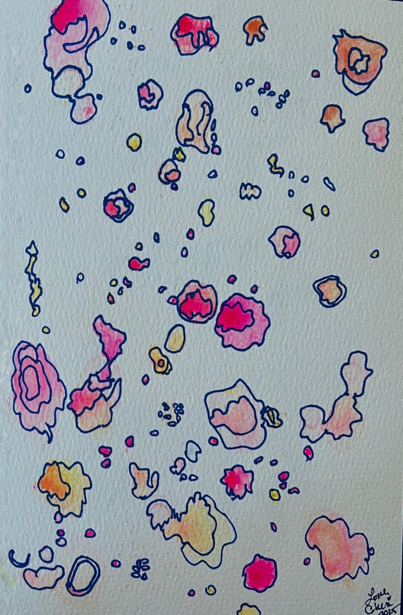 This piece came from splotches left on a page turned over in my art journal. I've been playing with the light and the color. It struck me how each interpretation so changes the mood of the piece. So, what do you think? Bluish background and color, or black and white? or... both? I love that art offers me infinite choices. Love yourself. Love others. Make art.