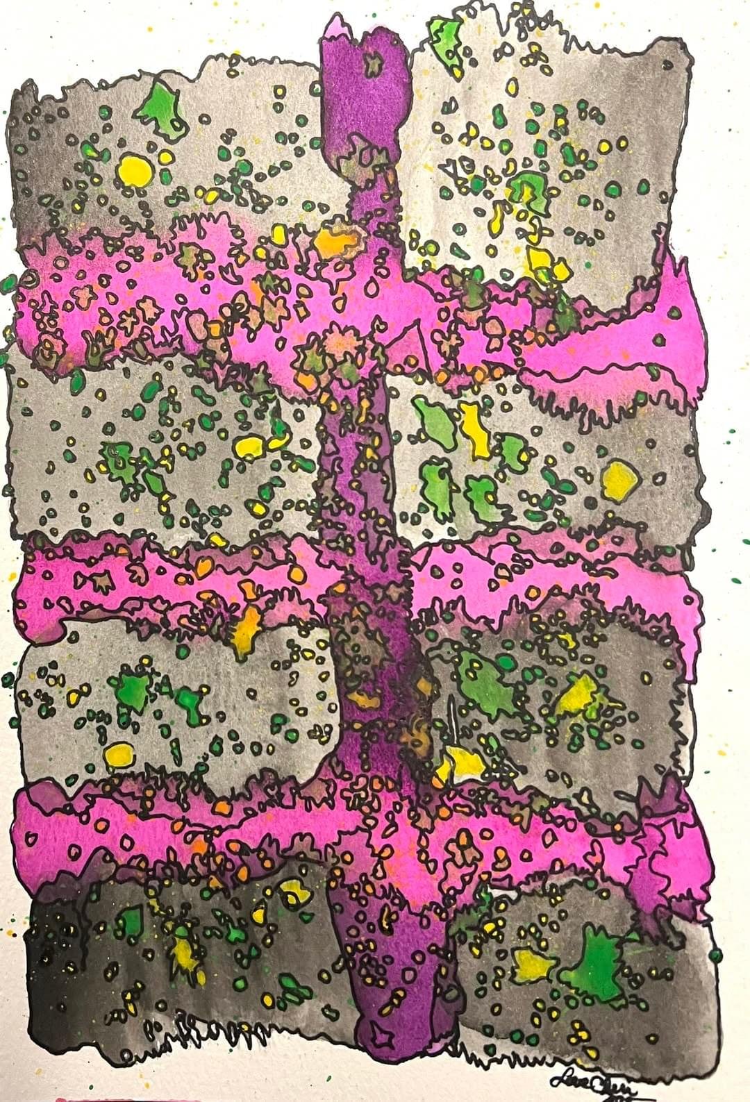 Experimenting with creating a shape in the background, using colors that I don't typically use (black and gray). This is an odd little piece. I'm not quite sure what to make of it. I think this describes how I'm feeling over the past few weeks pretty well. I see what I see and yet, it seems there's a whole narrative that is not what I see. All I know for sure is that paint, water and paper are real, tangible and help me stay grounded. Love yourself. Love others. Make art.