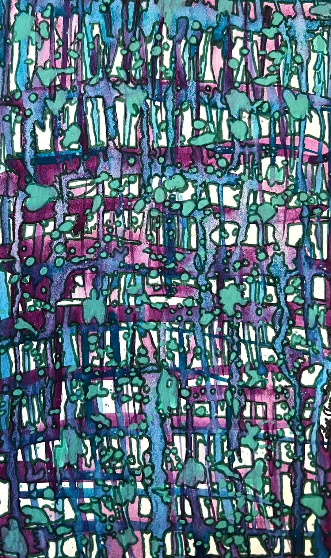I guess I’m being a grid girl! This one was very detailed and started with a drippy sort of grid in the background. Immersive! Solid self-care art therapy. 10/10 experience. Will paint again! Love yourself. Love others. Make art.