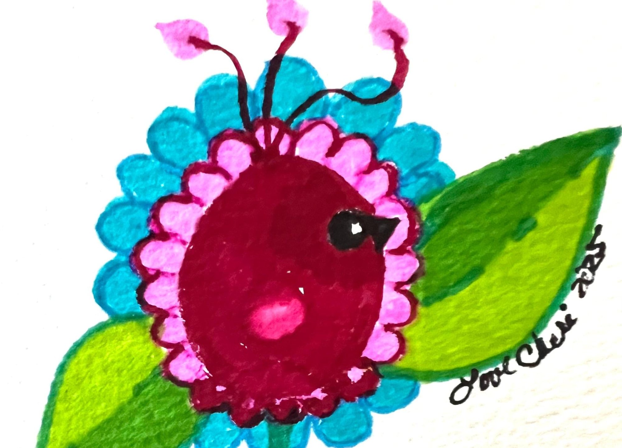 Part of what will be a larger work in progress. ... Birdie flower! I have no idea why! But birdie flower it is this morning. May your day include at least one unexpectedly joyful thing. Hold tight to the joy. Love yourself. Love others. Make art.